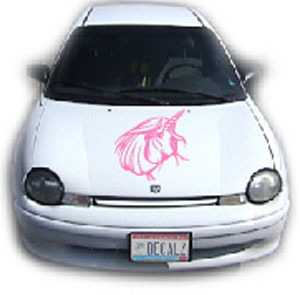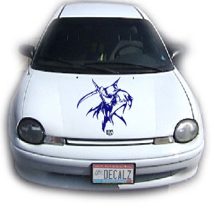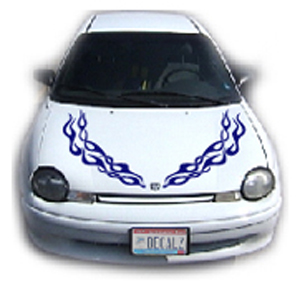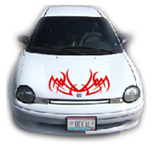 | Be sure to check out the hood section to find an awesome added feature to your graphics package. Didn't see one you liked? If you want a MATCHING hood decal to go with this set of side graphics (NO PICTURES AVAILABLE), just click yes and $29.99 will be added to your order. Need a custom decal? Web address decals, car clubs, banners? Whether you are an artist, have a picture of what you want, or just a good imagination.......we can help! We can do ANYTHING you want in ANY color! Email us the idea of your dream graphic, and we will do our best to design it for you.....NOTHING is too wild for us! |